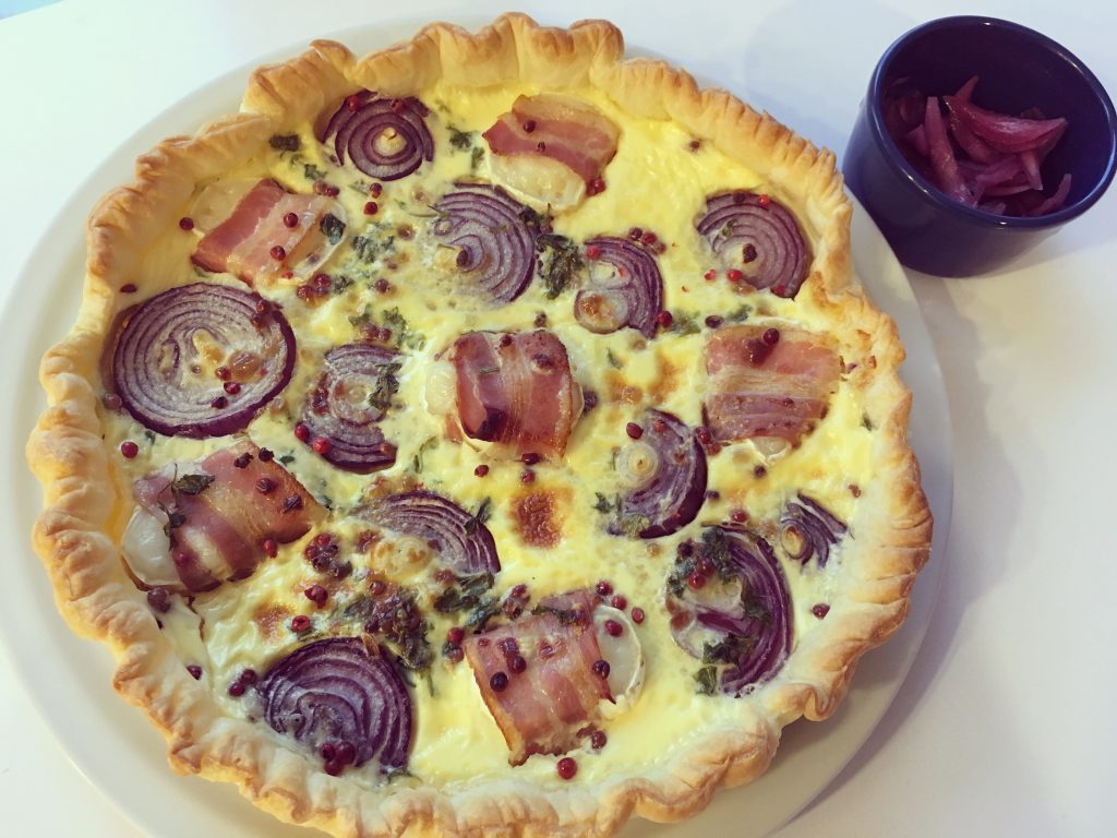 POUR 6 PERS: PREPARATION : 20 min + 20 min de cuisson environ INGREDIENTS: 1 pâte feuilletée ou brisée 100 g de chèvre frais (6 tranches coupées dans une bûche) 2 oignons moyens rouges 6 tranches fines de poitrines fumé 1 cuillère à soupe de baies roses Sel & poivre 1 petite botte de persil 2 […]