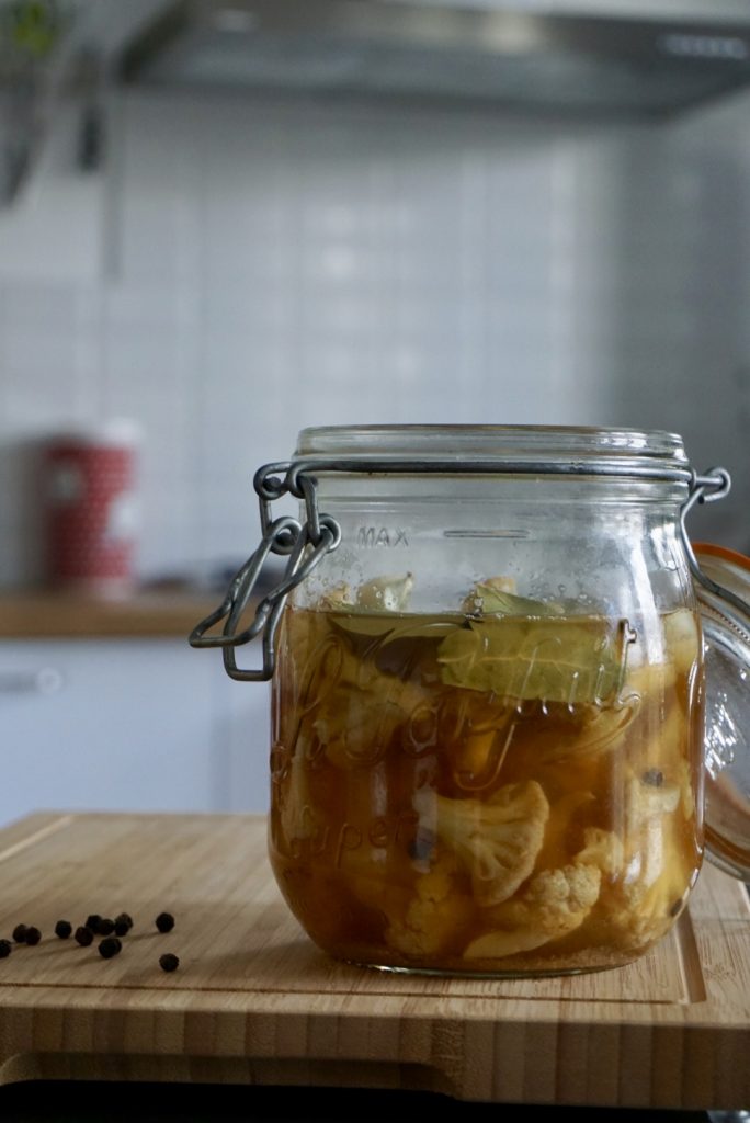POUR 1 BOCAL (900ml) : PREPARATION : 15 min + 3 min de cuisson INGREDIENTS: 300 g de petits bouquets de chou-fleur 30 cl d’eau 2 c à c de gros sel 15 cl de vinaigre de cidre de qualité 2 c à c de cassonade 6 feuilles de laurier une dizaine de grains de […]
