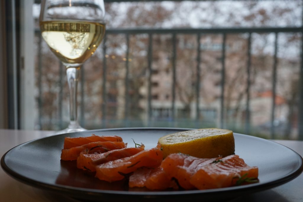 Gratin de ravioles au saumon fumé & poireaux Saumon Gravlax Saumon mariné au citron et à la coriandre Conchiglionis au saumon fumé et poireaux Conchiglioni farci à la mousse de truite fumée/chevre/ciboulette