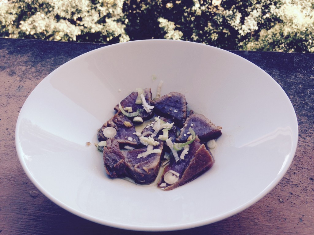 POUR 4 PERS PREPARATION : 25 min + 1h de marinade INGREDIENTS: 1 pavé de thon rouge frais de 400 g 10 cl de sauce de soja 1 gousse d’ail 3 cébettes 5 g de gingembre 5 cl d’huile de sésame 5 cl d’huile d’olive 50 g de sésame blanc 50 g de sésame noir […]